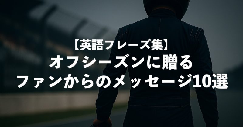 - 解説:応援だけでなく、ドライバーの心身を気遣う丁寧なメッセージとして。礼儀正しく、落ち着いた印象。