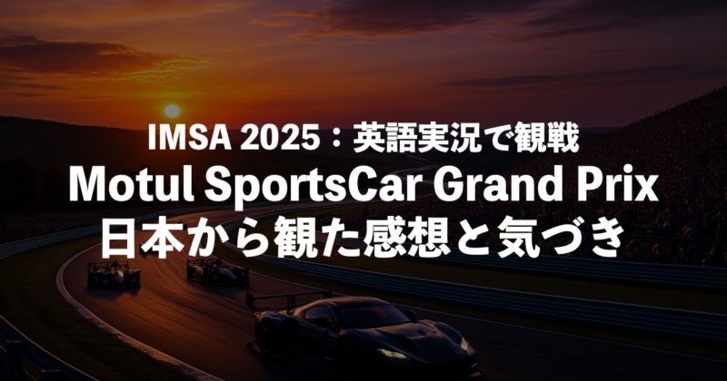 Motul SportsCar Grand Prix を日本から観戦してみたところ、レースの状況が頻繁に変わり、英語中級者〜上級者向けだと感じました!レースの状況が落ち着いているときは、実況も聞きやすく、映像からの情報を把握しやすかったですが、FCYや接触が多かったことで筆者も状況把握に苦労しました。一方で、前回の観戦からIMSAやレースについての知識が増えるように調べ学習をしたため、理解できる部分は確実に増えました!